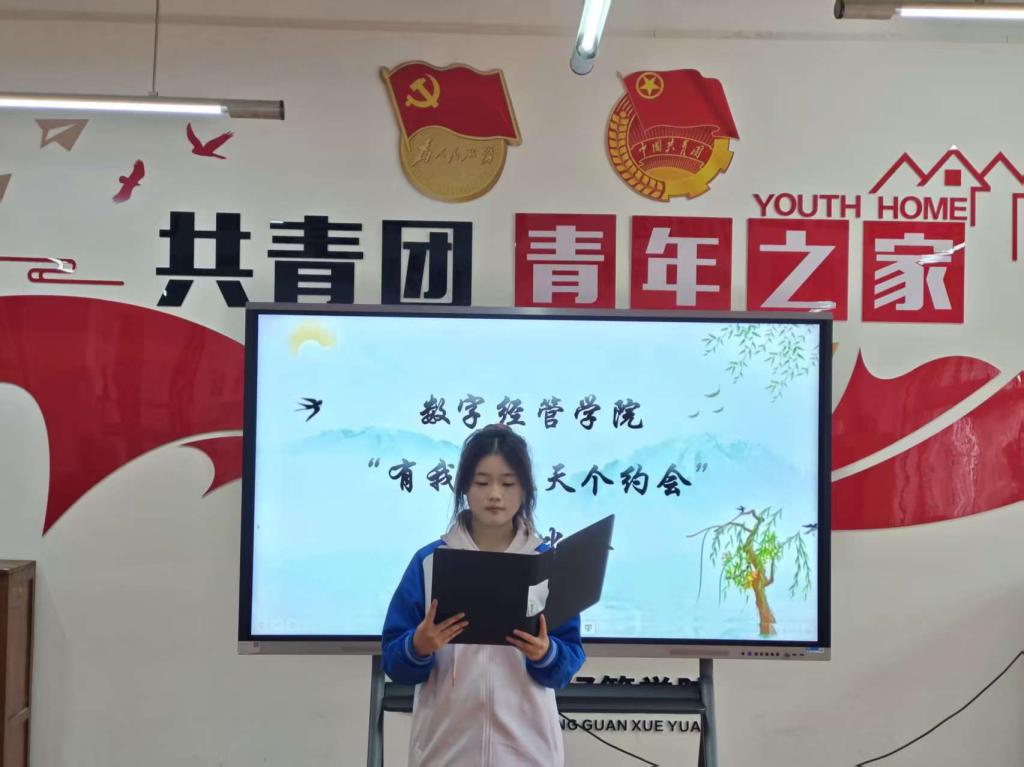 为进一步丰富校园文化生活,传承与弘扬中华优秀传统文化。数字经管学院于3月17日下午16点在青年之家成功举办“我与春天有个约会”主题诗词朗诵比赛。本次比赛旨在以经典诗词为文化媒介,引导同学们在深情吟诵中细致感受春天的诗意美好,深刻体悟自然的生机活力,进而抒发对春天的无限热爱与美好向往之情。