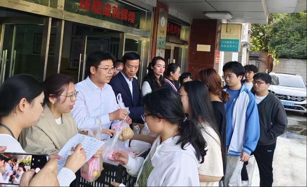 秋色如许,月满情深。在中华人民共和国迎来76周年华诞与传统中秋佳节双节同至的喜庆时刻。为弘扬中华民族优良传统,营造浓厚的中秋佳节氛围,让同学们感受到学院大家庭的温暖,9月29日下午,数字经管学院在电子信息大楼大厅举行了“情暖中秋”慰问活动,学院党支部书记孟发军、院长杜海军、副院长刘娟、学工办主任杨涛、数字工程系主任严立琼、数字管理系主任王文燕以及辅导员班主任代表向全院学生致以节日的诚挚问候,并向留校学生送上饱含祝福的中秋月饼和水果。
