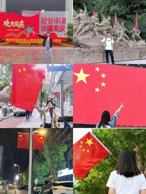 本次活动鼓励学生将爱国情怀融入假期生活,无论身处何地,都能以与国旗合影的方式,表达对祖国的热爱与祝福。倡议一经发出,便得到了学子们的热烈响应。从繁华都市到美丽乡村,从名山大川到家乡小巷,五星红旗的身影与学子们青春的笑脸,共同构成了这个国庆假期最动人的风景。