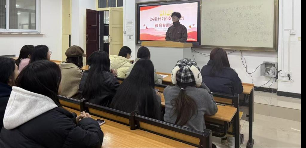 为深入学习贯彻习近平新时代中国特色社会主义思想,推进团员和青年主题教育走深走实,加强团员队伍建设。根据上级要求,2025年12月28日晚,数字经管学院各团支部集中开展专题组织生活会暨团员教育评议工作,全体在籍团员参与,辅导员、班主任到会指导。