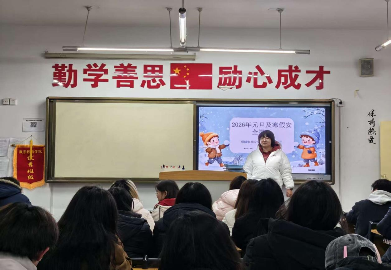 为切实筑牢学生2026年寒假安全防线,2026年1月3日晚,数字经管学院各班级召开2026年寒假安全教育主题班会。其中,大一、大二学生以线下集中形式参会,大三学生通过线上会议平台同步参与,实现安全教育全覆盖。