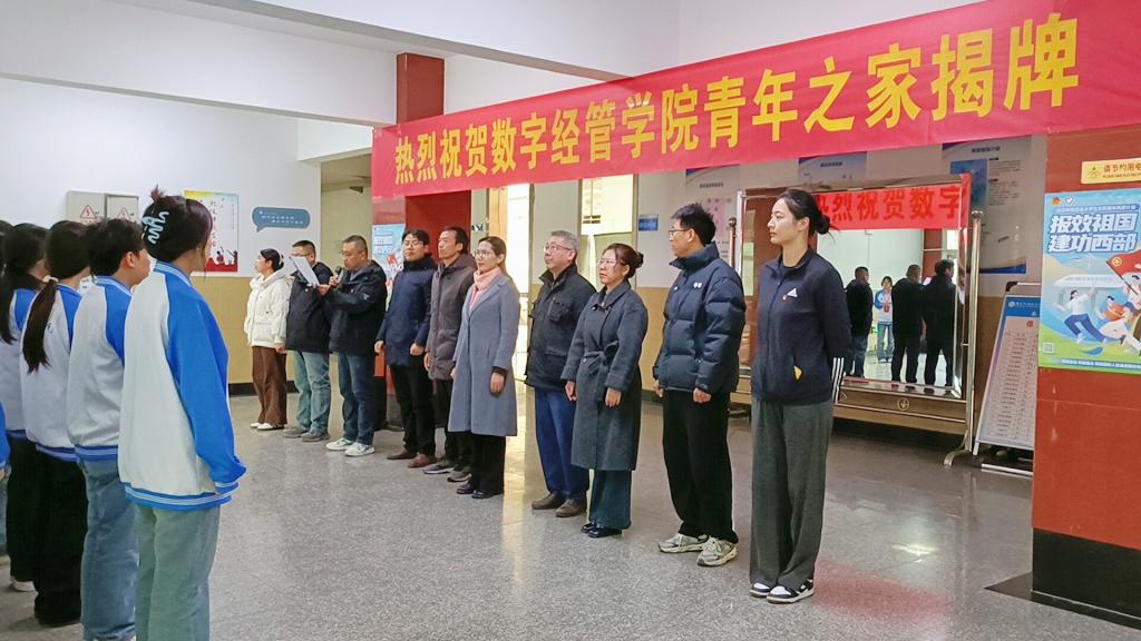 2026年1月4日下午,数字经管学院“青年之家”迎来了揭牌仪式。校党委副书记张琴,党委学工部部长、学生处处长王建斌,校团委副书记郭世强,数字经管学院党政领导及师生团干部、学生会干部、2025级团支书、青年代表等参加揭牌仪式。揭牌仪式由数字经管学院学生工作办公室主任、团总支书记杨涛主持。